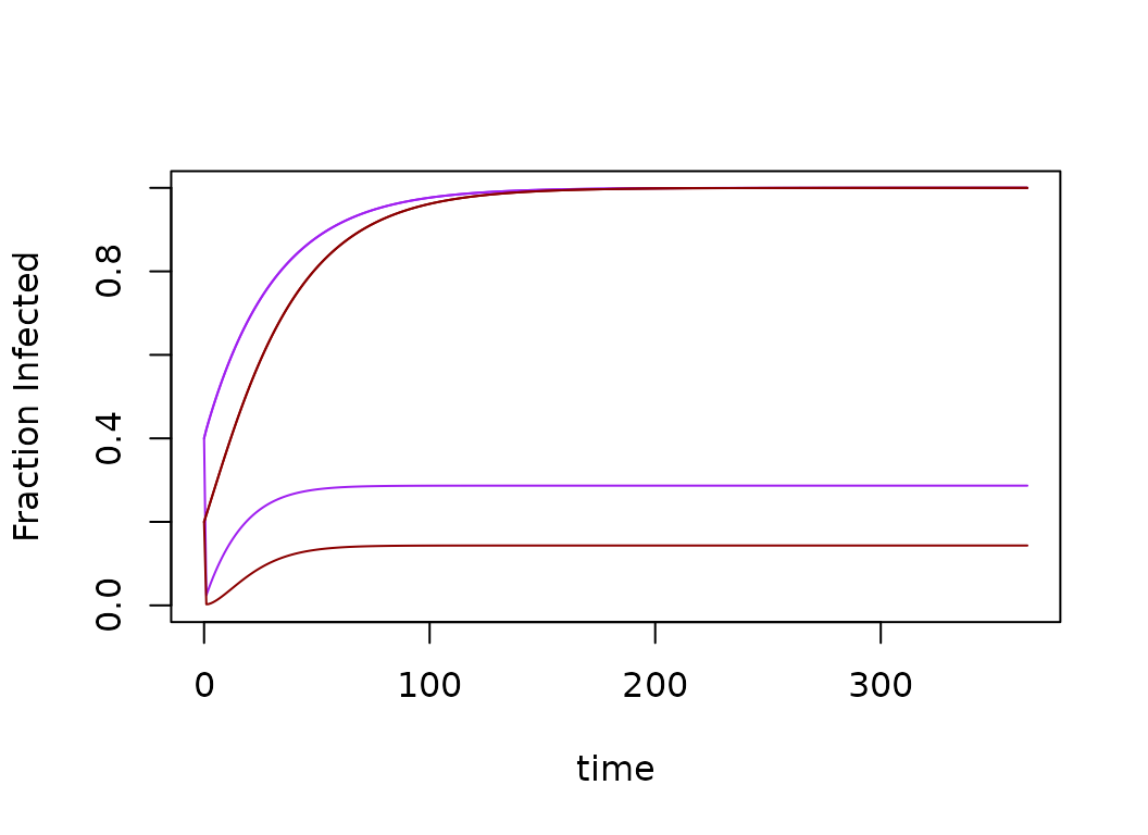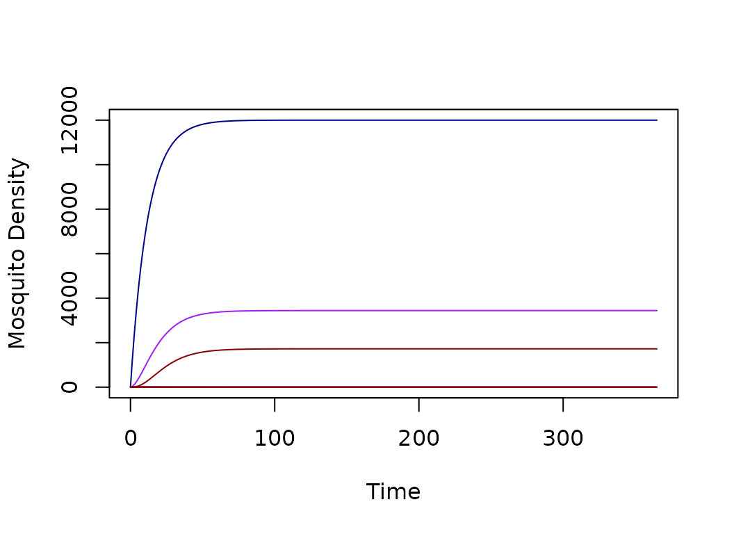 Most of the models developed to model malaria parasite infections in mosquitoes look at the infection states: uninfected; infected; or infected and infectious. A few models have been developed that track also track parity. A different class of models tracks the behavioral / physiological state of mosquitoes, so we call them behavioral state models. A model with both infection states and behavioral states was first published by Le Menach, et al. (2005)1.
